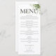Este elegante menu de casamento com tipografia floral verde pode ser personalizado com sua informação e suas iniciais de monograma no verso. Projetado por Thisnotme©