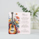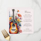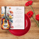 Adicione um toque harmonioso às suas mesas de recepção com este cardápio lindamente desenhado, criado para um casamento com tema de música romântica. A ilustração ousada da guitarra de casamento é combinada com sutils acentos florais em aquarela moderna e elegante, misturando o caráter rústico de um concerto musical country com o charme suave de um verão em um prado de flores silvestres. Contra um fundo natural de marfim champanhe ecru, o layout parece refinado e equilibrado - perfeito para um casamento de um músico guitarrista com um clima de jardim botânico de cottage na primavera.