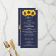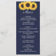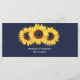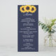 Avise aos seus hóspedes o que está no menu da sua recepção de casamento usando este campo floral girassol no menu de casamento de temas azuis.