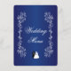 Noiva de janto de casamento e design de cor azul real. Você pode personalizar este cardápio real de janto de casamento azul com seus detalhes de casamento. Se precisar de ajuda para personalizar, entre em contato conosco através do link desta página. Noiva e noiva design real azul colorido personalizado menu janto de casamento