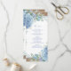 Menu e programa Hydrangea de Casamento Botânico Azul Esta design de casamento romântica apresenta hidrangeas de cor aquática macia em tons azuis empoeirados, elegantemente arranjados em um fundo texturizado rústico. Detalhes botânicos deliciosos e tipografia clássica criam um aspecto eterno e charmoso, ideal para casamentos rurais ou de jardins. Detalhes de casamento personalizáveis acrescentam um toque pessoal e elegante. Esta design faz parte de uma coleção de casamento personalizável. Eu posso ganhar uma pequena comissão através de compras feitas através de links de referência de mídias sociais.