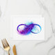 Infinity symbol with a beautiful feather painted in purple and blue bright colors on white background.