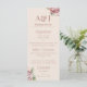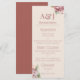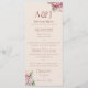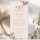 Este menu de casamento elegante apresenta um tema floral elegante. Duas amostras de iniciais de monograma são impressas na parte superior. Você pode personalizar o menu para incluir suas próprias iniciais e opções de comida personalizadas. Um delicado buquê de flores de hortênsia aquarela é impresso no canto superior direito, e outro no canto inferior esquerdo. As hortênsias são um rosa romântico e rosado.