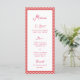 Eleve a proposta às damas de honra com o nosso menu temático italiano chic, perfeito para a noiva moderna que ama tudo que é italiano. Este cartão lindamente desenhado apresenta ilustrações vermelhas encantadoras de símbolos icônicos italianos, como pizza, massa e gelato, emoldurados por uma borda xadrez clássica vermelha e branca.