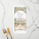 Featuring a soft watercolor landscape framed by a graceful stone arch and trailing greenery, this menu design adds a refined, destination-wedding feel to your reception tables. The clean typography keeps courses easy to read while maintaining a sophisticated, luxury aesthetic.