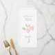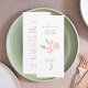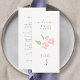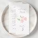 This lovely wedding menu and table number combo card features a contemporary set of purple fonts, a blush watercolor floral illustration, as well