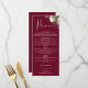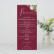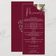 Este menu de casamento de flores botânicas de borgonha elegante com folhas de verdura pode ser personalizado com suas informações em tipografia chic com suas iniciais de monograma no verso. Projetado por Thisisnotme