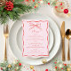 Menu Jantar de Natal Francês com Laço Retro Rosa e Verm