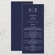 Este elegante cardápio de casamento azul marinho e dourado pode ser personalizado com as iniciais do seu monograma e informações do cardápio de casamento em tipografia sofisticada. Projetado por Thisisnotme©