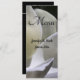 Menu de Jantar de Casamento da Magnolia Branca desenhado com uma elegante Flor Magnólia Branca em fundo preto. O texto inclui: Menu, Os primeiros nomes e a data de casamento da noiva e do noivo. O texto inverso inclui: Seleção de Apetista, Entre e Deserto. Para personalizar, simplesmente insira os detalhes do Menu no nosso modelo fácil, substituindo o texto de exemplo.
