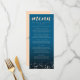 Adicione um toque de elegância à sua recepção de casamento com este simples mas na moda, menu de janto, que apresenta elegante manuscrito e letra de bloco em pêssego com um chá de confete colocado em uma sombra oceânica deslumbrante de evocativo azul do Mediterrâneo ao fundo preto. Personalizar conforme desejado. Design © W.H. Sim. Mais informações em zazzle.com/expressionsoccasions