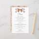 Lista de cardápios de coquete e janto de casamento rústico com ilustração desenhada à mão de arcos e flores marrons de terracota.