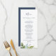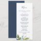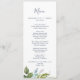 Este cartão de janto de casamento verde é perfeito para um casamento elegante no meio do verão. O design botânico apresenta um arranjo exuberante de cor d'água pintada, eucalipto, verde e folhas verdes com sutis manchas de flores rosadas e cor-de-rosa. Este menu pode ser usado para recepção de casamento, janto de ensaio ou qualquer evento.