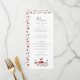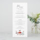 Cartão de menu de janto de casamento russo com ilustração aquosa de cogumelos e mariposas.