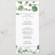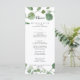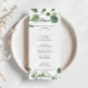 Este cartão de janto de caligrafia moderna do eucalipto é perfeito para um casamento simples. A design apresenta galhos e folhas botânicas elegantes e desenhadas a aquarela e desenhadas à mão. Este menu pode ser usado para recepção de casamento, janto de ensaio, chá de panela ou qualquer evento.