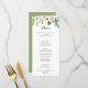 Este simples cartão de janto de caligrafia verde floral é perfeito para um casamento tropical. A design apresenta rosas brancos, cor-de-rosa e pincéis pintados à mão, embutidos em folhagem verde, inspiradora beleza artística. Este menu pode ser usado para recepção de casamento, janto de ensaio, chá de panela ou qualquer evento.