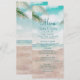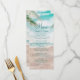 Cena de praia pintada por brisa de ilha, com Ondas de Oceano, praia de Sandy e Palm Trees, com um belo céu azul-lacrimogênio. Com Fontes Modernas De Script De Tipografia. Uma Praia Tropical de Verão, Ou design de casamento de destino - Menus de decoração de Mesa de Recepção de Janto Personalizado! Veja meu compro para ver a suíte de casamento inteira para este design!