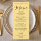 Simples estilo, cartão de menu de cor amarelo-manteiga para o seu casamento que apresenta um script preto estilizado junto com as suas informações personalizadas. Edite o cartão de menu e substitua os nomes de casamento e a data juntamente com os itens de menu que serão servidos na sua recepção de casamento. Selecione o estilo do cartão de menu conforme desejado.