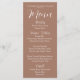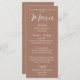 Trendy mocha castanho cartão de janto de cores para o seu casamento, que apresenta um roteiro branco e estilizado junto com as suas informações personalizadas. Edite o cartão de menu e substitua os nomes de casamento e a data juntamente com os itens de menu que serão servidos na sua recepção de casamento. Selecione o estilo do cartão de menu conforme desejado.