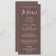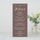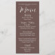 Simples estilo, cartão de menu de janto de cores esticado para o seu casamento que apresenta um roteiro branco e estilizado juntamente com as suas informações personalizadas. Edite o cartão de menu e substitua os nomes de casamento e a data juntamente com os itens de menu que serão servidos na sua recepção de casamento. Selecione o estilo do cartão de menu conforme desejado.