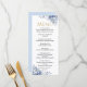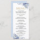 Adicione um toque de sofisticação às suas mesas de recepção com este elegante cartão de menu de casamento, com florais de cor azul-aquosa de pó macio e delicados sotaques de ouro. Perfeito para casamentos românticos, jardins ou clássicos, este design de menu coordena-se lindamente com o cheio Pó Azul e a Coleção de Casamentos Dourados.