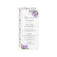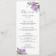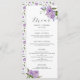 Cartão de menu de janto floral elegante com aquarela ilustrando as flores de púrpura com verde.