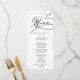 Esta carta de janto de casamento romântica é perfeita para um casamento simples. O clássico design moderno apresenta espirais ricos e turbilhões brancos com magnífica e elegante tipografia à mão. Este menu pode ser usado para recepção de casamento, janto de ensaio ou qualquer evento.