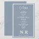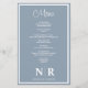 Elevem seu janto de ensaio com nosso Menu de Janto de ensaio personalizado do Monograma de Casamento Azul e Branco Dusty, onde cada detalhe desperta elegância e charme. Adaptados à perfeição, esses menus de janto personalizados são o epítome da sofisticação, estabelecendo o palco para uma experiência culinária memorável. Criados em uma paleta colorida azul e branca, eterno empoeirada, esses menus oferecem uma simplicidade refinada que complementa qualquer estética de casamento. Seu monograma personalizado, exibido elegantemente, adiciona um toque pessoal que dá o tom para uma noite inesquecível. Projetados com muita atenção aos detalhes, nossos menus de janto de ensaio não só servem como um guia prático para as delícias culinárias da noite, mas também como uma bela guardiã para seus convidados apreciarem. Quer você esteja hospedando uma reunião íntima ou uma grande celebração, esses menus certamente irão impressionar com sua elegância subestimada e design impecável. Complete a aparência com nossos cartões de lugar correspondentes, criando uma capa de mesa coesa e polida que delicie o olho e tantaliza as papilas gustativas. Do festa de noivado ao recepção de casamento, nosso Menu de Janto Personalizado de Monograma de Casamento Branco e Azul Dusty é a escolha perfeita para casais que buscam opções de menu simples mas sofisticadas para suas ocasiões especiais.