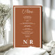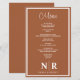 Apresentando nosso elegante Terracotta e o Menu Janto de ensaio personalizado Monograma de Casamento Branco, o epítome da elegância refinada para sua ocasião especial. Eleve o seu janto de ensaio, festa de noivado ou recepção de casamento com talento personalizado e sofisticação subestimada. Feitos com atenção minuciosa aos detalhes, esses menus elegantes apresentam um esquema eterno de terracota e cor branca, exuando calor e charme. Nosso monograma personalizado adiciona um toque personalizado, fazer cada menu uma merecedora de sua celebração inesquecível. Projetados para simplicidade e elegância, esses menus de janto ensaiados complementam sem interrupção qualquer cenário de mesa, desde o chic rústico ao minimalismo moderno. Quer você esteja hospedando uma reunião íntima ou um grande caso, nossos menus de janto personalizados definem o palco para uma experiência inesquecível de jantar. Combine esses menus com nossas placas de lugar coordenadas para um olhar coeso e polido, garantindo que todos os detalhes de seu evento sejam apresentados de forma impecável. Deixem seus convidados mergulharem em delitos culinários enquanto admiram a beleza do seu cardápio de casamento, criando memórias para durar uma vida inteira. Elevem seu janto de ensaio ou recepção de casamento com nosso menu de Janto personalizado de ensaio do Terracotta e Casamento Branco, a combinação perfeita de simplicidade, elegância e encanto personalizado para seu dia especial.