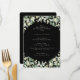 Um menu Natal/Feriado 5x7. Amoras de neve pintadas à mão e caules de eucalipto formam uma fronteira para seu texto contra um fundo preto. Todo o texto é totalmente editável para que você possa mudar facilmente o estilo/cor/tamanho/posicionamento da fonte. Elementos de coordenação disponíveis.