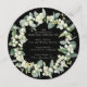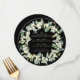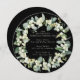 Um menu circular de Natal/Feriado.Amoras de neve pintadas à mão e caules de eucalipto dispostos em uma bela coroa de Natal contra um fundo preto. Pode ser impresso em estoque de cartão redondo ou quadrado. Todo o texto é totalmente editável para que você possa mudar facilmente o estilo/cor/tamanho/posicionamento da fonte. Elementos de coordenação disponíveis.