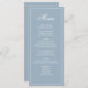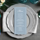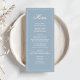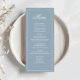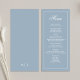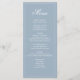 Ponha o tom para seu dia especial com este cartão de cardápio de casamento, projetado com caligrafia simples e elegante e estilo formal clássico. Este modelo de janto de recepção em na moda azul empoeirado adiciona um toque refinado à sua definição de mesa. Apresentando uma design de tipografia tradicional, é perfeita para uma mesa ou recepção de casamento de festas de ensaio. Personalize-o com o monograma da noiva e do noivo e com as iniciais de ampersas clássicas para uma estética limpa, básica e mínima.