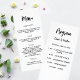 Menu janto do programa de casamento preto branco