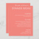 Apresentando nossa Coleção de Tema "Coral e Branco Rosa": Moderno e elegante simbolizando a elegância duradoura de um casamento feliz. Escolha o Tema Branco e Coral Rosa e comemore a riqueza de sua história de amor em todos os detalhes. Esta é uma placa Menu dupla, com opções de janto e bebidas, basta personalizá-la para ajustado do seu dia especial!