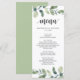 Cartão de Janto de Elopemento de Casamento Eucalyptus Moderno Verde. Fácil personalização e personalização para suas necessidades, e seus convidados de janto ficarão entusiasmados quando eles virem esse menu de janto perfeito e na moda.