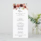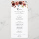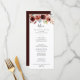 Este cartão de cardápio primavera elegante para janto floral é perfeito para um casamento simples. A design apresenta flores lindas, pintadas à mão, cor-de-rosa, esbranquiçadas, vermelhas, azuis e arrojadas, juntamente com folhagem verde. Este menu pode ser usado para recepção de casamento, janto de ensaio, chá de panela ou qualquer evento.
