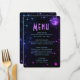 Este divertido menu de janto azul e roxo da galáxia pode ser personalizado para criar um evento divertido e memorável.