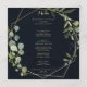 Este cartão de janto de caligrafia verde-azul-dourado geométrico é perfeito para um casamento simples. A design apresenta lindas folhas verdes pintadas manualmente em um fundo azul escuro, enfeitando uma armação geométrica dourada. Este menu pode ser usado para recepção de casamento, janto de ensaio, chá de panela ou qualquer evento.