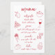 Compartilhe seu menu especial de janto de ocasião com este belo design inspirado italiano com letras cursivas estilo manuscrito acentuado com ilustrações de comida desenhadas à mão em vermelho de tomate. As ilustrações incluem massas com arco, vinho, limão siciliano, tomate, pizza, espaguete em um garfo, pastelaria e café. Personalize o título do menu e até quatro cursos.