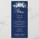 Janto de casamento floral à noite floral, azul-marinho e branco, para um casamento no inverno moderno. Um elegante spray botânico de folhas verdes desdobra-se acima da trendy escrita branca para um maravilhoso evento moderno.