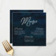 Marinho Luster Dark Blue Watercolor Design, com tipografia Silver Sparkle e bela textura de fundo de aquarela. Com Fontes Modernas De Script Chic. Um estilo de tendência e luxuoso - Menus quadrados de decoração de Mesa de Recepção de Casamento Personalizados! Veja meu compro para ver a suíte de casamento inteira para este design!