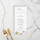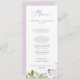 Este cartão de janto de casamento lilás é perfeito para um casamento de primavera ou verão. A romântica e elegante design floral apresenta flores lilás roxas de aquarela com uma sensação de jardim boho country. Este menu pode ser usado para recepção de casamento, janto de ensaio ou qualquer evento.