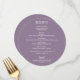 Uma placa de menu redonda janta na lavanda (ou qualquer cor) e a letra chic em branco mostra as opções de menu. Perfeito para uma recepção de casamento moderna, janto de ensaio de casamento, festa de aniversário ou qualquer evento especial com um janto sentado. Escolha QUALQUER FUNDO DE COR, qualquer texto de COR, qualquer letra! Personalize facilmente com o menu e os detalhes do seu janto.