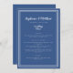 O menu de casamento simples, minimalista e elegante apresenta um design contemporâneo com uma borda branca nítida de dois quadros em um fundo azul clássico. A formulação tradicional proporciona sofisticação eterno mas moderna. Personalize o design do casamento com os detalhes do menu em letras brancas e roteiro. A parte traseira da placa corresponde a um CLÁSSICO AZUL.