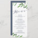 Menu folha única, tamanho: 10,16 x 22,86 cm, papel: Semi-brilho Básico