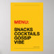 Ilumine sua cozinha com humor! Poster “MENU: LANCHES, COQUETÉIS, FOFOCAS & VIBRAÇÕES” em tipografia moderna. Disponível em várias cores de fundo, perfeito como decoração de casa, presentes ou arte para parede da cozinha.