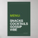 Ilumine sua cozinha com humor! Poster “MENU: LANCHES, COQUETÉIS, FOFOCAS & VIBRAÇÕES” em tipografia moderna. Disponível em várias cores de fundo, perfeito como decoração de casa, presentes ou arte para parede da cozinha.