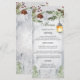 Melhore a decoração do seu casamento de inverno com este "Menu de Casamento com Lanterna de Pinheiro Rústico de Inverno". Concebido para capturar a essência de um cenário rústico e nevado, este menu apresenta elegantes ramos de pinheiro e uma encantadora lanterna, trazendo um brilho quente e convidativo para as configurações da sua mesa. Cada prato é lindamente delineado contra um fundo gelado, tornando fácil para os convidados folhear as deliciosas opções culinárias. Ideal para criar uma experiência gastronômica aconchegante e memorável no seu casamento de inverno, este menu não é apenas prático, mas também um lindo souvenir do seu dia especial.