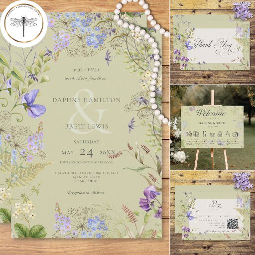 Menu Lavanda russa e Sage Wildflower Casamento Sage