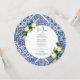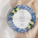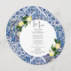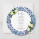 Traga o charme italiano para o seu chá de panela com esta maravilhosa placa de menu redonda com padrões tradicionais de maióica e limões brilhantes. A design circular o torna ideal para celebrações inspiradas no Mediterrâneo. Personalize o menu para se adequar ao seu evento e faça pedidos sem envelopes para uma solução prática e elegante. Comece a projetar agora!